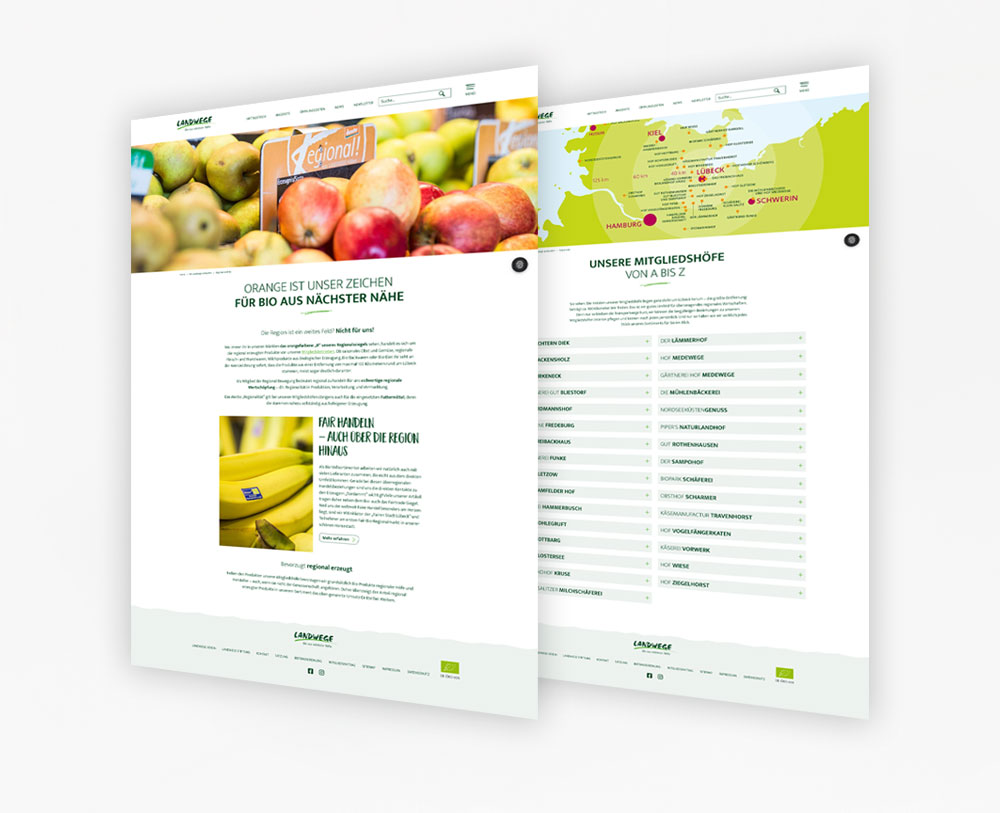 LANDWEGE ist eine Erzeuger-Verbraucher-Genossenschaft. Bei Landwege verbinden sich ein fester Kreis an Bio-Landwirt:innen aus der Region max. 100 km rund um Lübeck und Verbraucher:innen zu einer starken Gemeinschaft. Die 4 Bio-Märkte sind in Lübeck beheimatet und die Bio-Bäckerei "Das Freibackhaus" liegt auf der Lübecker Altstadtinsel. Mittlerweile zählen mehr als 1.400 Mitglieder, über 130 Mitarbeiter und rund 30 ökologische Mitgliedshöfe zur EVG LANDWEGE eG.